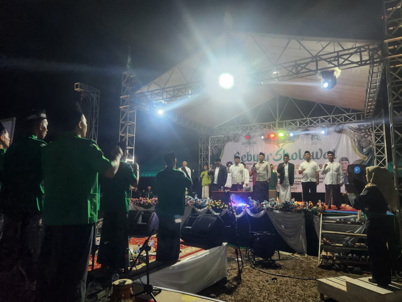 Gebyar sholawat yang dipimpin oleh KH M.Thoyib Firdaus SH dari pimpinan Pondok Pesantren Riyadus Solihin Kerinci kanan, Tausiah Agama Kiyai Anam Suafii dan Pesan moral Agama untuk para santri Kyai Prof Dr Rubaidi MAg Instruktur PBNU Pusat.