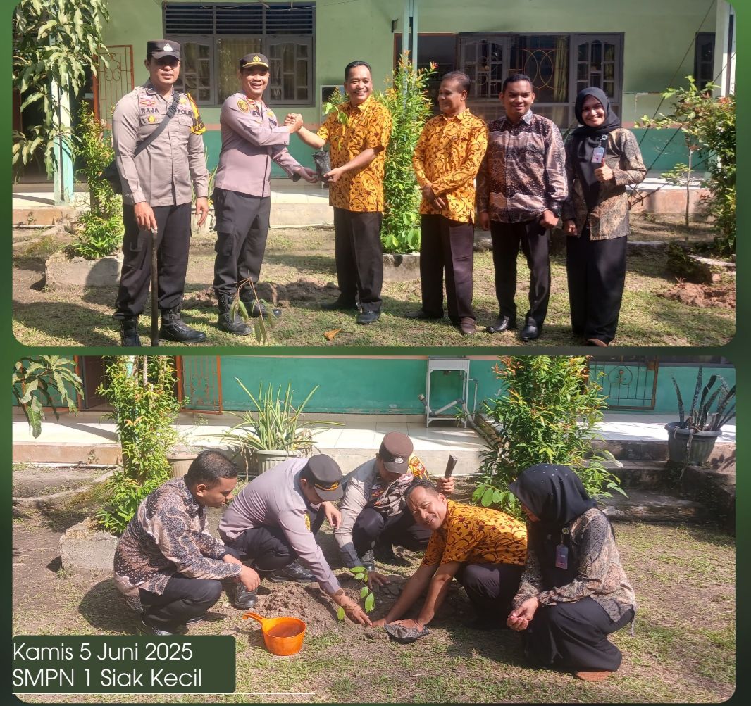 Dalam rangka memperingati Hari Lingkungan Hidup Sedunia yang jatuh setiap 5 Juni, Kepala Sekolah SMPN 1 Siak Kecil dan kapolsek menunjukkan komitmen menerapkan konsep Kapolda Riau melalu Green Policing untuk  menjaga kelestarian alam dan mencegah kebakaran hutan dan lahan (Karhutla) di Riau.