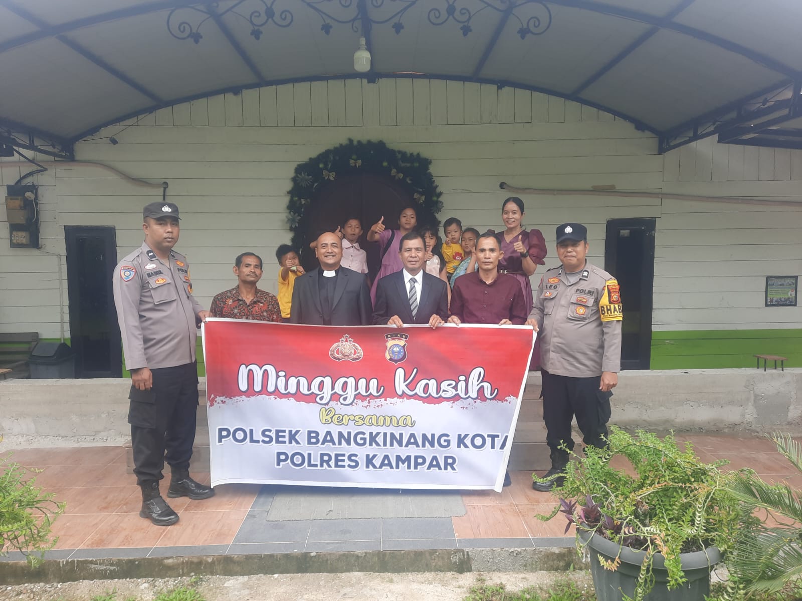 Bangkot-.Polsek Bangkinang Kota Polres Kampar melaksanakan pengamanan kegiatan Ibadah Minggu Kasih umat Kristiani di rumah ibadah wilayah hukum Bangkinang , Minggu (7/9/2025) pagi.