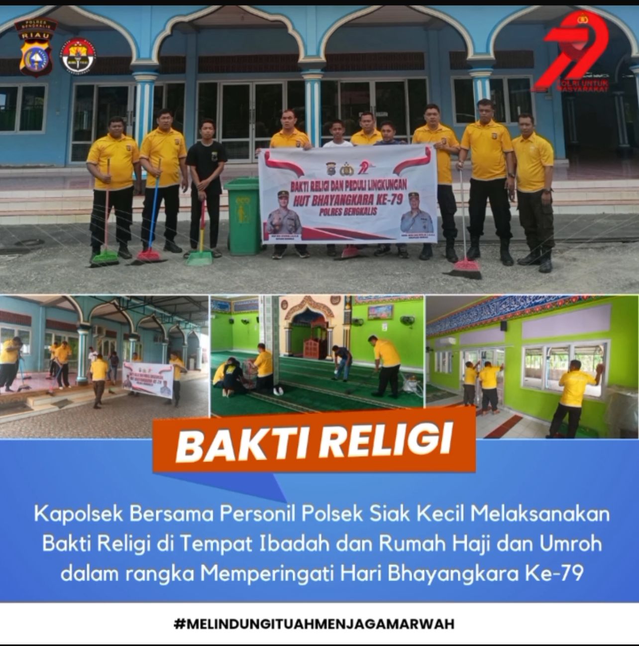 Do.com.-Rayakan Hari Bhayangkara ke-79, Kepolisian Sektor (Polsek) Siak Kecil melaksanakan kegiatan bakti religi berupa pembersihan lingkungan dan Pemberian alat kebersihan di dua tempat ibadah dan satu Lembaga Pendidikan Islam Pesantren  pada Kamis, 19 Juni 2025.