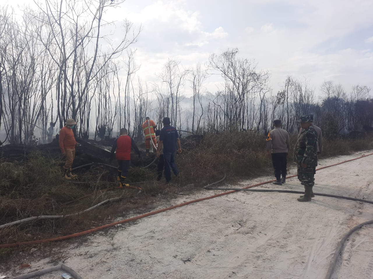 Dengan lokasi kebakaran dekat pemukiman penduduk dari sekitar semak belukar ,Selanjutnya untuk menjaga agar tidak ada asap kembali yang berpotensi menjadi api, tim gabungan tetap melakukan patroli pengecekan bekas lahan terbakar.